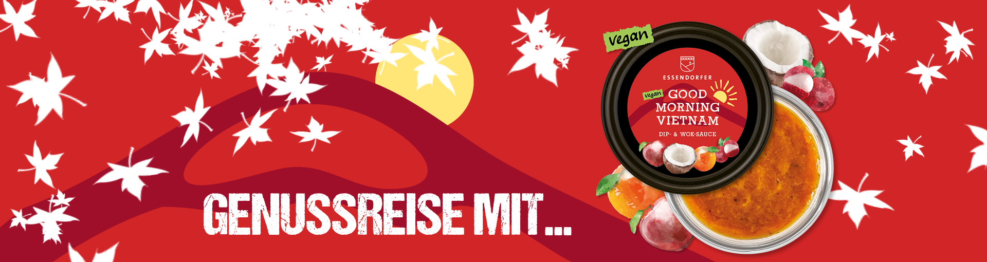 Die Dip & WOK Sauce Good Morning Vietnam spiegelt nicht nur die typisch vietnamesische Genusswelt wieder, sondern auch das Lebensgefühl, wie Andreas Essendorfer es auf seiner Reise kennengelernt hat. Gespickt mit den Kräutern und Geschmäckern aus dieser Region lässt sich die Sauce sehr kreativ einsetzen. Einige Rezepte aus Essendorfers Welt stellen wir Euch im Folgenden vor.
